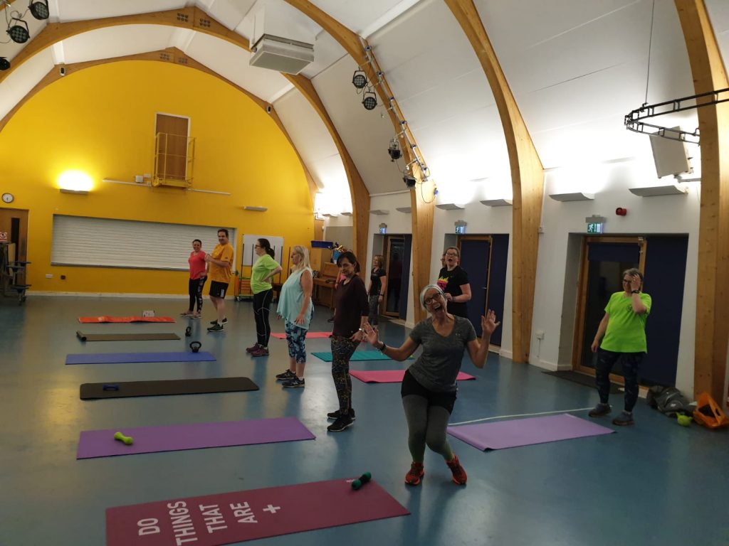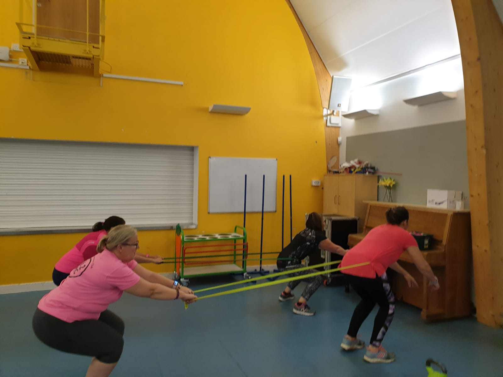There are modifications for every exercise making the classes suitable for all abilities. The exercises are a mixture of cardio, balance, resistance and weight training using your own body weight or dumbbells/kettlebells. No weights at home? No problem grab some tins of beans or empty plastic bottles filled with water, stones or sand. No resistance bands? Some very thick denier tights or lycra make a good alternative.